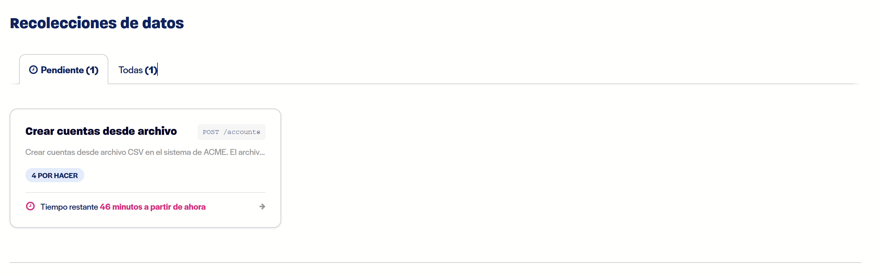 En el lateral izquierdo, se visualiza un tablero con el estado actual de todas las instancias de recolección del usuario: