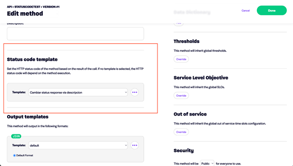 plantilla de status code, el método mantiene su comportamiento original, donde